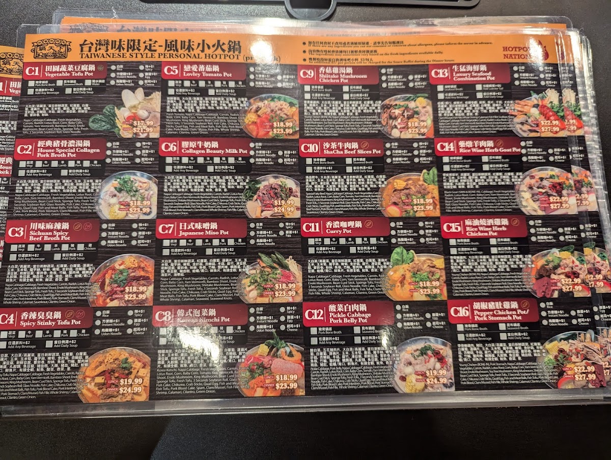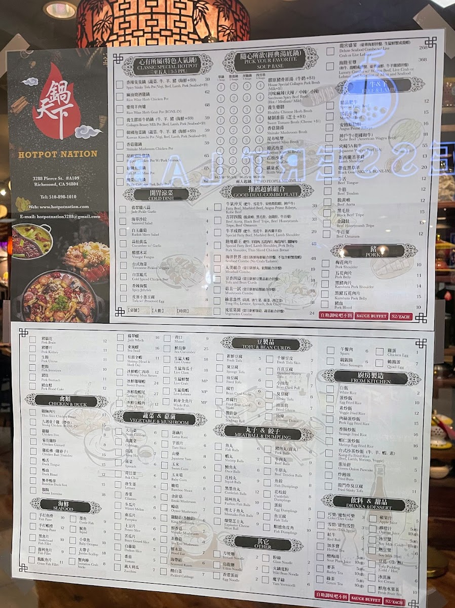 Hot Pot Nation offers a rich and diverse menu, making it an excellent destination for those craving a variety of hotpot options. The Pick Your Favorite Soup Base section lets you choose from a 4 Soups combination or more traditional choices like 2 Soups or 1 Soup. For those looking to indulge, the Deluxe Seafood Combo With Live Crab Or Live Lobster (龍宮盛宴) is a must-try, paired with fresh vegetables like Tong Ho, Lettuce, Spinach, Bok Choy. The Special Fatty Beef and Lamb Shoulder also stand out for their premium cuts of meat. You can further explore options like Marbled Beef, Beef Tendon, and Beef Aorta from the Beef & Lamb section. For a lighter, snackable option, Fried Fish Balls, Fried Lobster Balls, and Fried Corn are perfect accompaniments. A standout from the Classic Special Hotpot category is the Fish Head Miso Pot (砂鍋魚頭鍋), offering a rich, flavorful broth. In addition to the hotpot selections, the restaurant provides a range of Meatball & Dumpling choices like Mentaiko Fish Balls and Cuttlefish Dumplings. The Pork section features delectable options such as Kurobuta Pork Belly and Pork Blood Cake. A variety of vegetables, including Baby Corn, Bok Choy, and Tomato, bring freshness to the meal. Finally, finish your meal with a refreshing drink like Apple Juice or a dessert like Tofu Pudding (Cold/Hot). With its extensive menu and top-quality ingredients, Hot Pot Nation offers a truly satisfying dining experience.